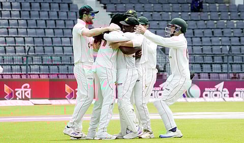 In their second innings, Bangladesh could make just 255 runs in 79.2 overs. A 60-run second-wicket stand between Mahmudul Hasan Joy (33 in 65 balls, with six fours) and Mominul Haque (47 in 84 balls, with six fours) and a 65-run stand between Haque and skipper Shanto (60 in 105 balls, with seven fours) looked to take the hosts towards a big score.