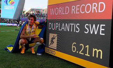 Eugene: Armand Duplantis from Sweden refreshed the men's pole vault world record with 6.21 metres at the World Athletics Championships on Monday (IST).