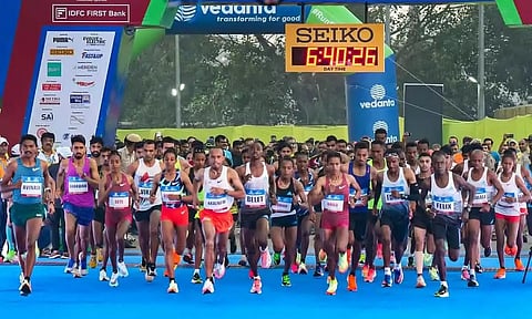 NEW DELHI: Ethiopia's Chala Regasa and Kenya's Irene Cheptai emerged winners in the Delhi Half Marathon 2022 — a World Athletics Elite Label Race —clocking 60:30 and 66.42 min, respectively here on Sunday.