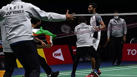 Bangkok: HS Prannoy produced a lion-hearted effort in the decisive fifth match as the Indian men's badminton team scripted history by reaching the title clash of the Thomas Cup Final for the first time ever with a 3-2 victory over Denmark in an edge-of-the-seat semifinal in Bangkok on Friday.