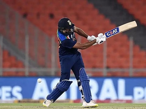 Hardik Pandiya was out caught by Wanindu Hasaranga on the bowling of Kasun Rajitha at the score of 14 out of 12 deliveries. Axar Patel takes the place of Hardik Pandiya in the centre of the ground.