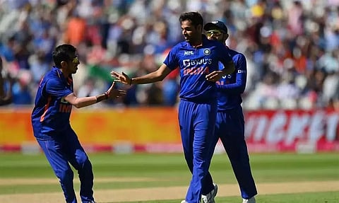 Yuzvendra Chahal, into the attack immediately after the PowerPlay, deceived Harry Brook in the air and had him caught in the deep as India's bowlers continued to pick wickets through the middle overs.