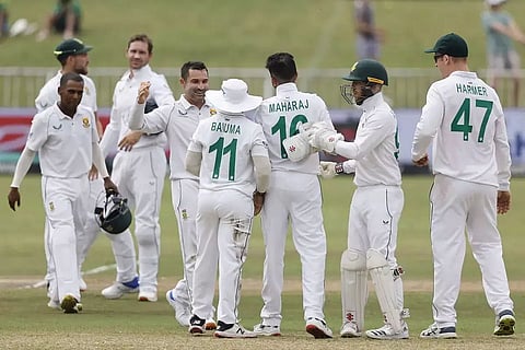 Durban: Spinners Keshav Maharaj and Simon Harmer spun a ruthless web around Bangladesh as the visitors were bowled out for just 53 within the first hour of day five's play, handing South Africa a 220-run win and a 1-0 lead in the two-match series at Kingsmead Stadium on Monday.