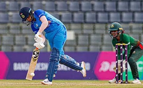 SYLHET: Shafali Verma hit her first T20I fifty since March 2021 and picked two wickets with her off-spin while stand-in captain Smriti Mandhana came out all guns blazing to set up India's 59-run thrashing of hosts and defending champions Bangladesh in Women's Asia Cup at Sylhet International Cricket Stadium on Saturday.