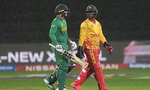 After Madhevere carried Zimbabwe to a fighting 79/5 in nine overs, after being 19/4 at one point, as rain caused a delay of two hours and 35 minutes in the proceedings, South Africa were well on their course to chase down, thanks to de Kock's early onslaught, laced with eight fours and a six.