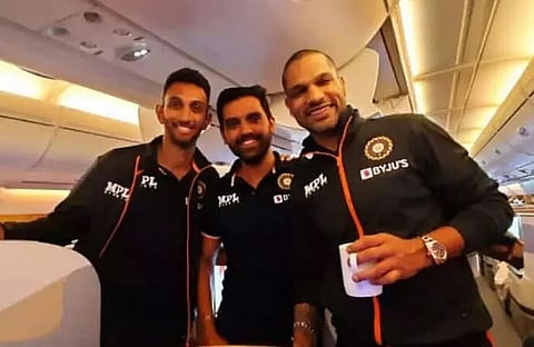 The social media accounts of the Board of Control for Cricket in India (BCCI) showed pictures of Prasidh Krishna, Deepak Chahar, Shikhar Dhawan, Shardul Thakur, Mohammed Siraj, Ruturaj Gaikwad and Rahul Tripathi in the flight.