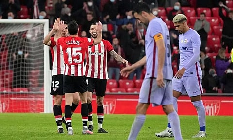 MADRID, Jan 21: Holders Barcelona were knocked out of the Copa del Rey after suffering a 3-2 defeat in extra-time at Athletic Bilbao in the last 16 on Thursday as their difficult season continued.