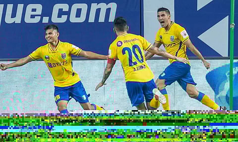 VASCO: Kerala Blasters FC sharpened their semifinal chances with a 3-1 win over Mumbai City FC in a rescheduled Indian Super League clash at the Tilak Maidan Stadium, here on Wednesday. Alvaro Vazquez (45th P, 60th) scored a brace either side of halftime after Sahal Abdul Samad (19th) opened the floodgates for Kerala who are now in fourth spot having 33 points from 19 games. They take on FC Goa in their final fixture while Mumbai -- in fifth spot with 31 points from 19 matches -- play Hyderabad FC in their final league game, hoping Kerala lose to Goa and they win against Hyderabad. For Mumbai, Diego Mauricio scored a consolation goal from the spot in the 71st minute. IANS