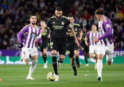 Benzema scored his first goal in the 83rd minute after the VAR penalised Javi Sanchez for an involuntary handball, with Valladolid striker Sergio Leon sent off for his protests on Friday night.