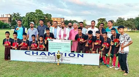 Guwahati: Ming Mang Nalbari High School, Dhemaji lifted the Pilik Choudhury U-14 Football title defeating Kakojan Boys Higher Secondary School, Jorhat by 2-0 in the final held at Sonapur today. Kanak Doley and Debojitsha Swargiary scored one goal each in the match. Debojitsha Swargiary later won the best player award. Atul Bora, MLA, Dispur Constituency attended the closing function as the chief guest.