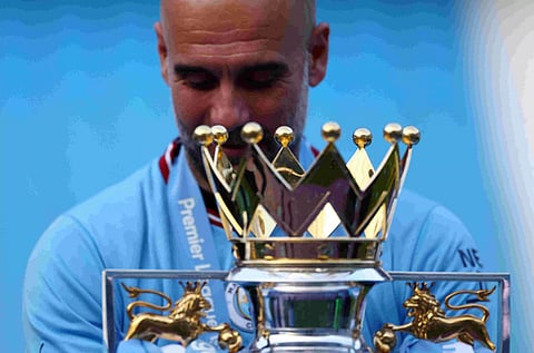 LONDON: Abanner inside Manchester City’s Etihad Stadium on Sunday was adorned with a photo of their manager with the words “Pep Guardiola, he changed football” printed across it.