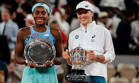 Minutes after she had crushed American Coco Gauff, the Polish top seed, who played the entire tournament with a ribbon in the Ukrainian colours pinned to her cap, said: "I would like to say something to Ukraine. Stay strong, the war is still there.