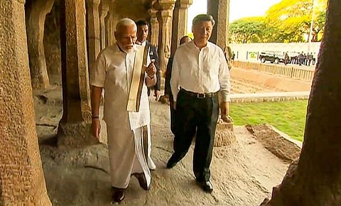 Modi received Xi near Arjuna’s Penance and took him inside the rock-cut temple and was seen explaining the features to the Chinese leader.