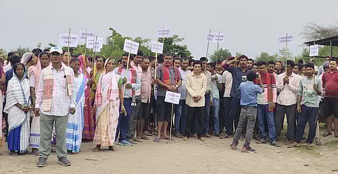 Guwahati: The people of Bhakat Chapori in Majuli sent out an SOS to Dispur to save them from the massive erosion on the banks of the Brahmaputra River. Hundreds of people from the 16 villages of Bhakat Chapori gathered on Monday morning to protest against 'government inaction'. Scores of people threatened to boycott the Panchayat election if no measures are taken up on a war footing to save their land and homes.