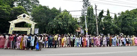 The examination began at 10.30 a.m. and concluded at 1.30 p.m. The examination in OMR sheets was for a total of 150 marks. The cities and towns in the state, including Guwahati, witnessed serpentine queues of candidates in front of examination centres. The gathering of guardians near the examination halls also added to the crowd and the enthusiasm. Some of the lady candidates came to the examination with their babies. Their husbands and other near and dear ones were seen babysitting outside the examination centres.