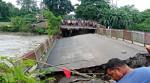 Meanwhile, waters from Bhutan washed away a concrete bridge, the Kalanadi Tiger Bridge, at Kumarikata in the Tamulpur district over the Kalanadi. Around 45 metres of the bridge were damaged.