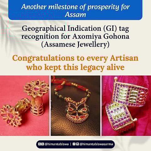 This was shared by CM Himanta Biswa Sarma in a post on X, where he said, “Sharing some golden news... Assam’s jewellery – an inseparable part of our heritage – has received its own Geographical Indication (GI) tag. I distinctly remember that in the 2018-19 Budget, we had proposed to secure GI tag to protect our artisans. Happy to see these efforts have been realised.