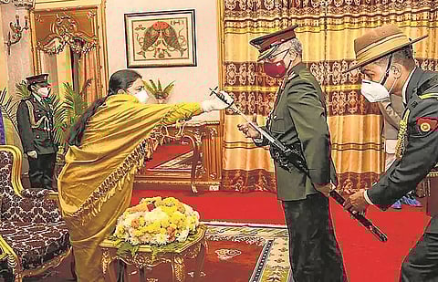 KATHMANDU: The Chief of Army Staff of Indian Army, General Manoj Mukund Naravane, was conferred with the honorary rank of General of the Nepal Army by President Bidya Devi Bhandari, here on Thursday.