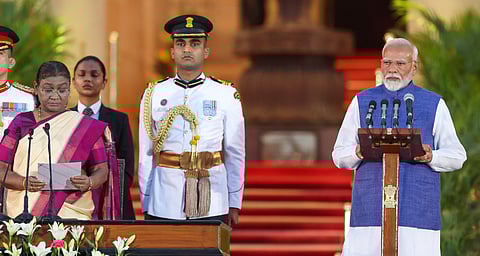 President Droupadi Murmu administered the oath of office to Narendra Modi, followed by other members of his team of ministers.