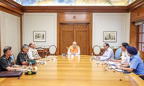 New Delhi: Prime Minister Narendra Modi on Friday met Defence Minister Rajnath Singh, NSA Ajit Doval, CDS General Anil Chauhan and the three service chiefs in the backdrop of the ongoing 'Operation Sindoor'.