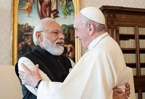 NEW DELHI/VATICAN: Pope Francis received Prime Minister Narendra Modi in a private audience at the Apostolic Palace in the Vatican on Saturday, the first such meeting between an Indian Prime Minister and the head of the Catholic Church in more than two decades.