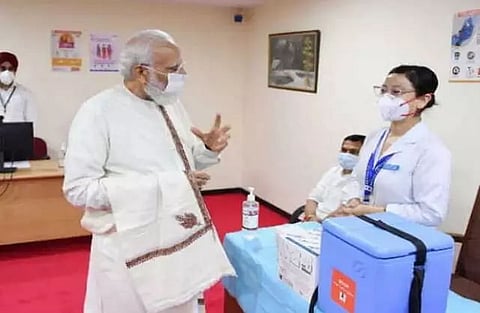 Modi visited the vaccination centre at the hospital and interacted with the health workers. He also gave thumbs up to the health workers at the hospital. India on Thursday achieved the major milestone of one billion vaccination under the mass vaccination drive.
