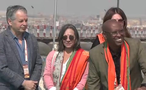 Prayagraj: A 118-member delegation which includes Heads of Mission (HoM) and their spouses as well as diplomats from a total of 77 countries, arrived at Maha Kumbh Mela Kshetra on Saturday.
