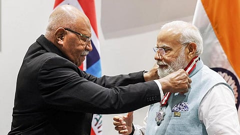 NEW DELHI: Prime Minister Narendra Modi was on Monday conferred with the Companion of the order of Logohu by Papua New Guinea, the nation’s highest civilian award for championing the cause of unity of Pacific Island countries and spearheading the cause of Global South.
