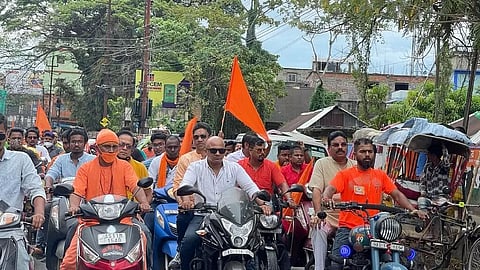 As it was simultaneously programmed, the assembly of protesters began around 11 am at the conveniently selected grounds of the three towns. From there, the processions moved through the main thoroughfares to reach the offices of the Deputy Commissioners. The huge gatherings and protests were addressed by the leaders of the VHP, BJYM, Mahila Morcha and the ABVP among others in the Barak Valley and other areas. The speakers lashed out at the 'Jamat e Islam', radical clerics and imams for their heinous provocations.