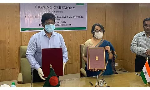 The Second Addendum was signed by Indian High Commissioner in Bangladesh Riva Ganguly Das and Bangladesh Shipping Ministry Secretary Mohammed Mezbah Uddin Chowdhury.