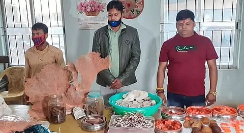 GUWAHATI: Sleuths of WCCB (Wildlife Crime Control Bureau), Guwahati and the State Forest Department, on Wednesday, busted a racket involved in the sale of animal and plant parts, including those of Schedule-1 species besides marine ones, in Guwahati.